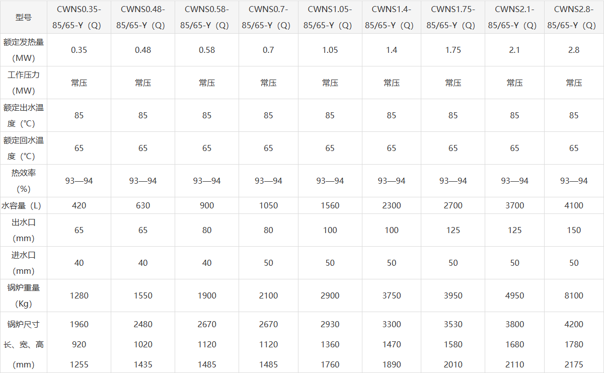 1、CWNS型燃气锅炉为卧式快装内燃三回程火管锅炉。采用偏置炉胆湿背式结构,高温烟气依次冲刷*二及第三回程 烟管,然后由后烟室经烟囱排入大气,结构紧凑,外形美观;